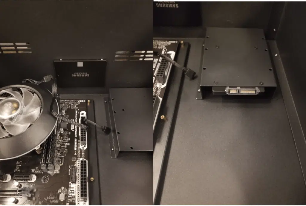 The primary hard drive and secondary hard drives were mounted to the side of the case and within the hard drive, enclosure provided.