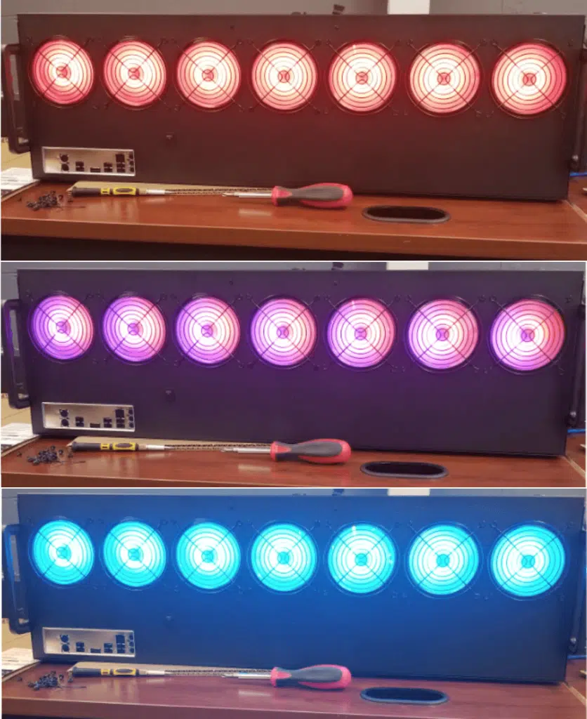 With the addressable LEDs, we were able to set them up to change with the load of the GPU.