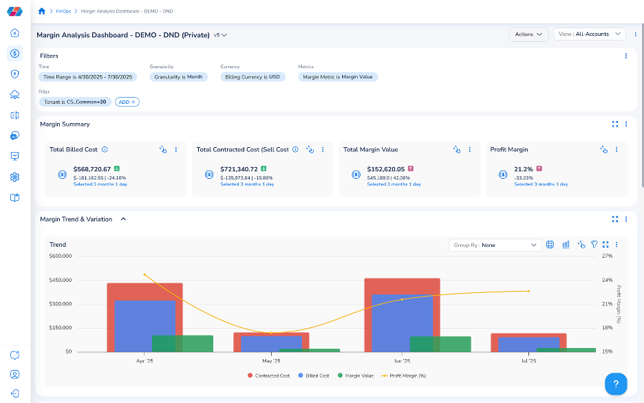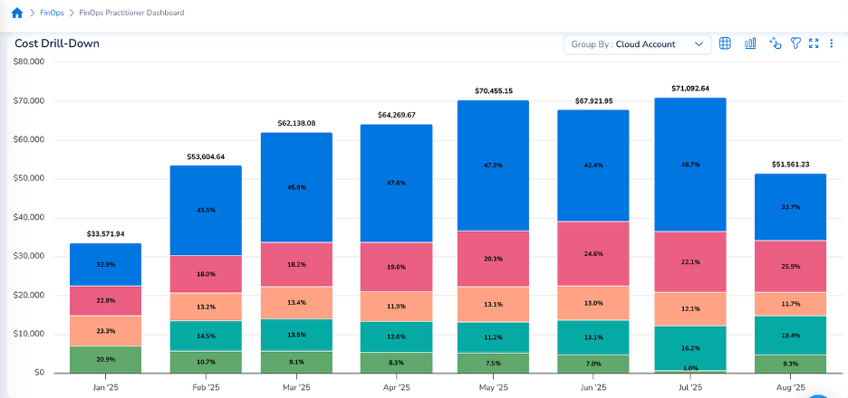 - Configurable, persona-based dashboards tailored for foles like CFO and FinOps Leads, offering detailed drill-downs into tags, SKUs, and resource categories.