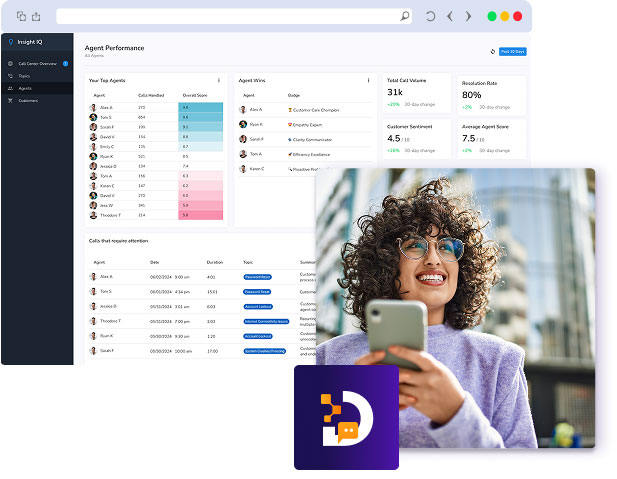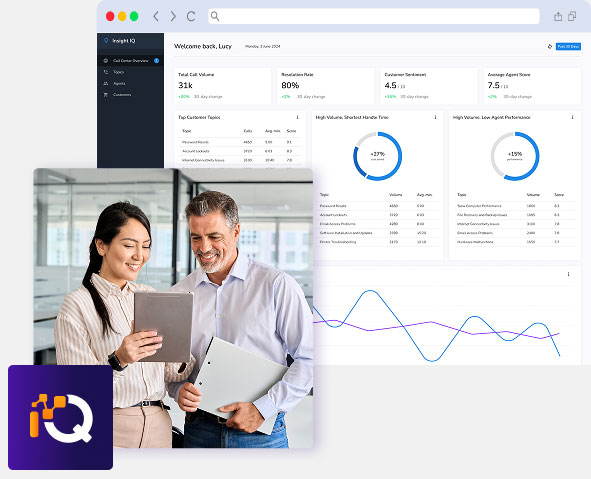 Contact Center IQ optimizes analytical, conversational, and operational efficiency with: